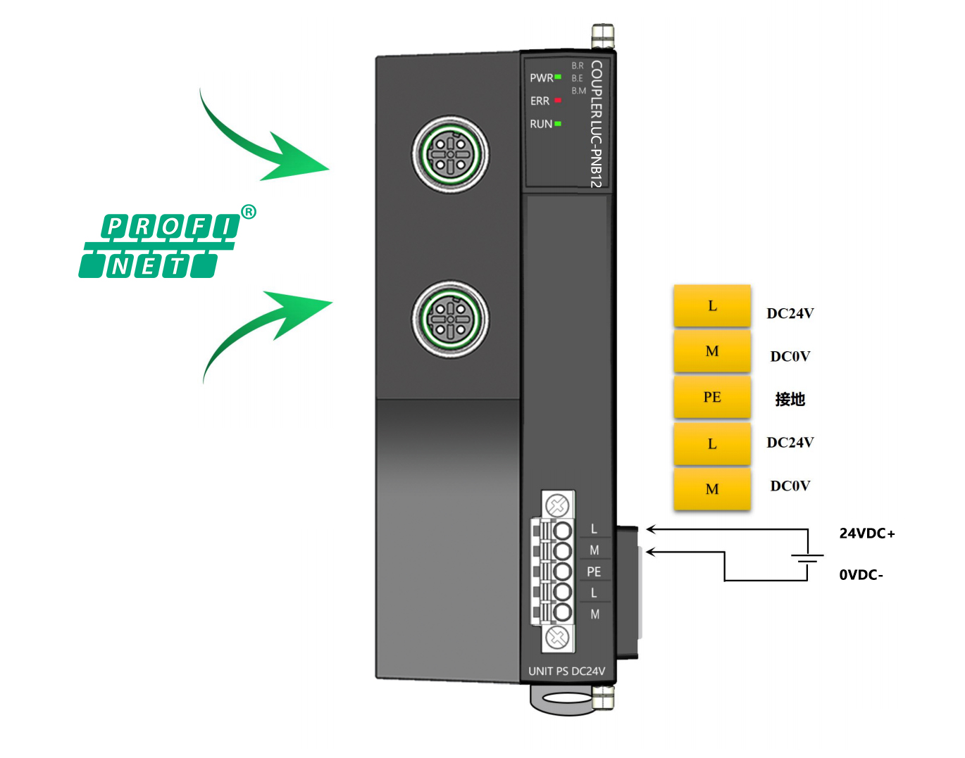 薄片型多功能分布式I/O,PROFINET耦合器,2xM12,可級聯,可擴展32個模塊,24VDC