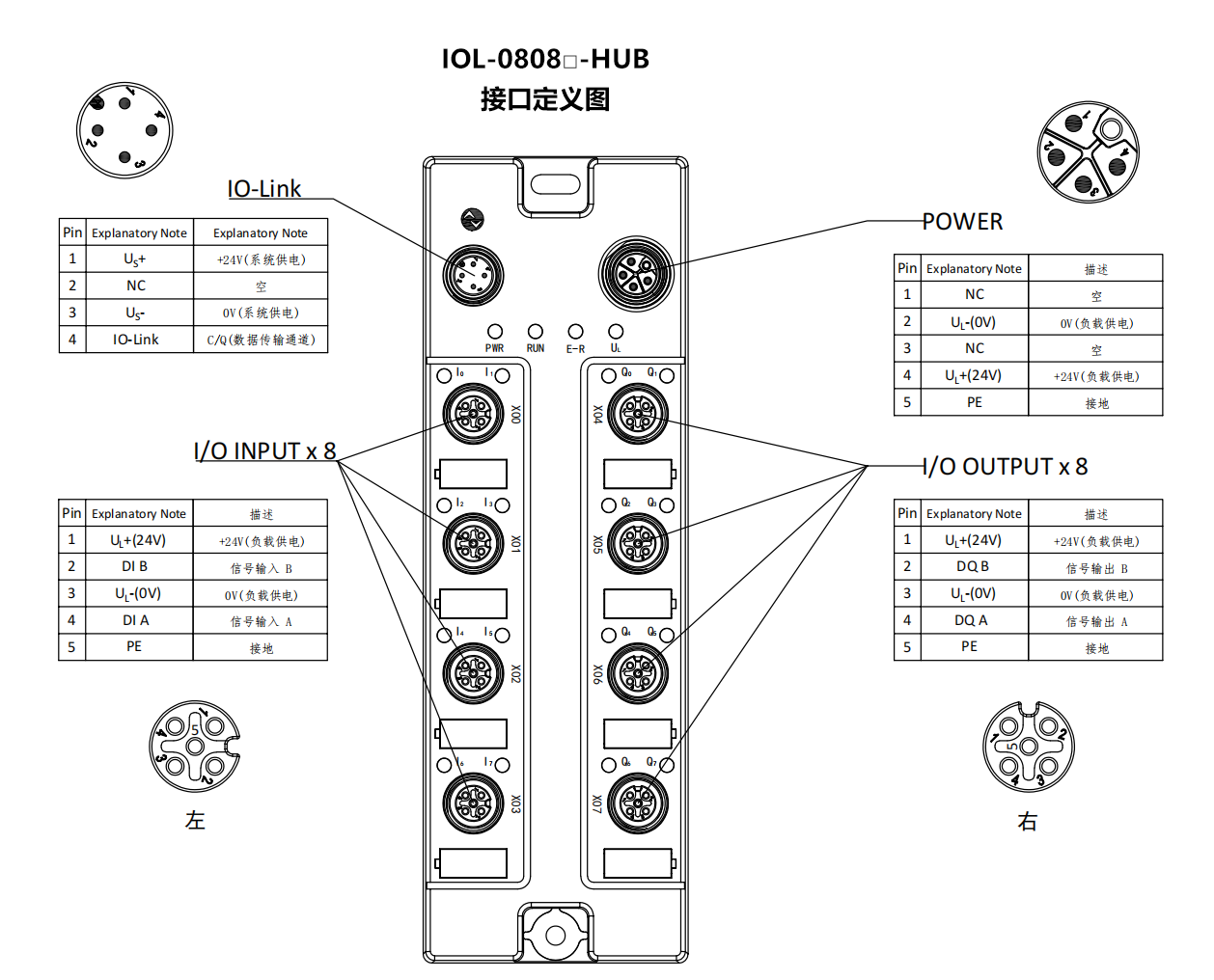 信號接口:8×M12,A-Code,5P孔
